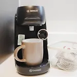 - ❓Une cuisine est-elle disponible à appartement pour les clients ?Oui, appartement est équipé d'une cuisine complète et propose également une bouilloire électrique, un réfrigérateur et de la vaisselle.